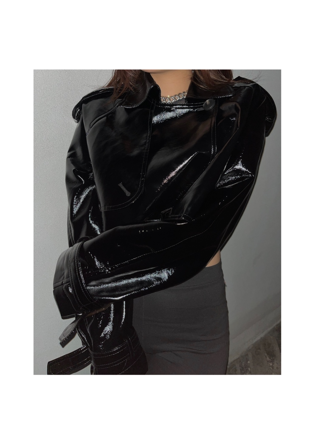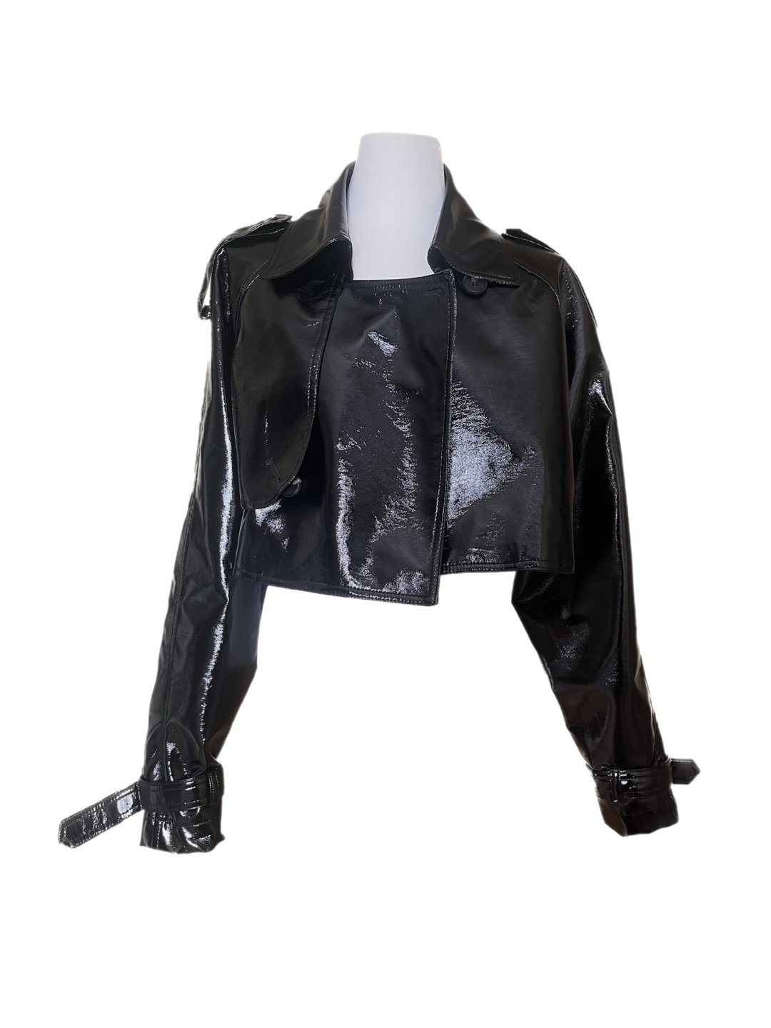 Vegan leather cropped trench