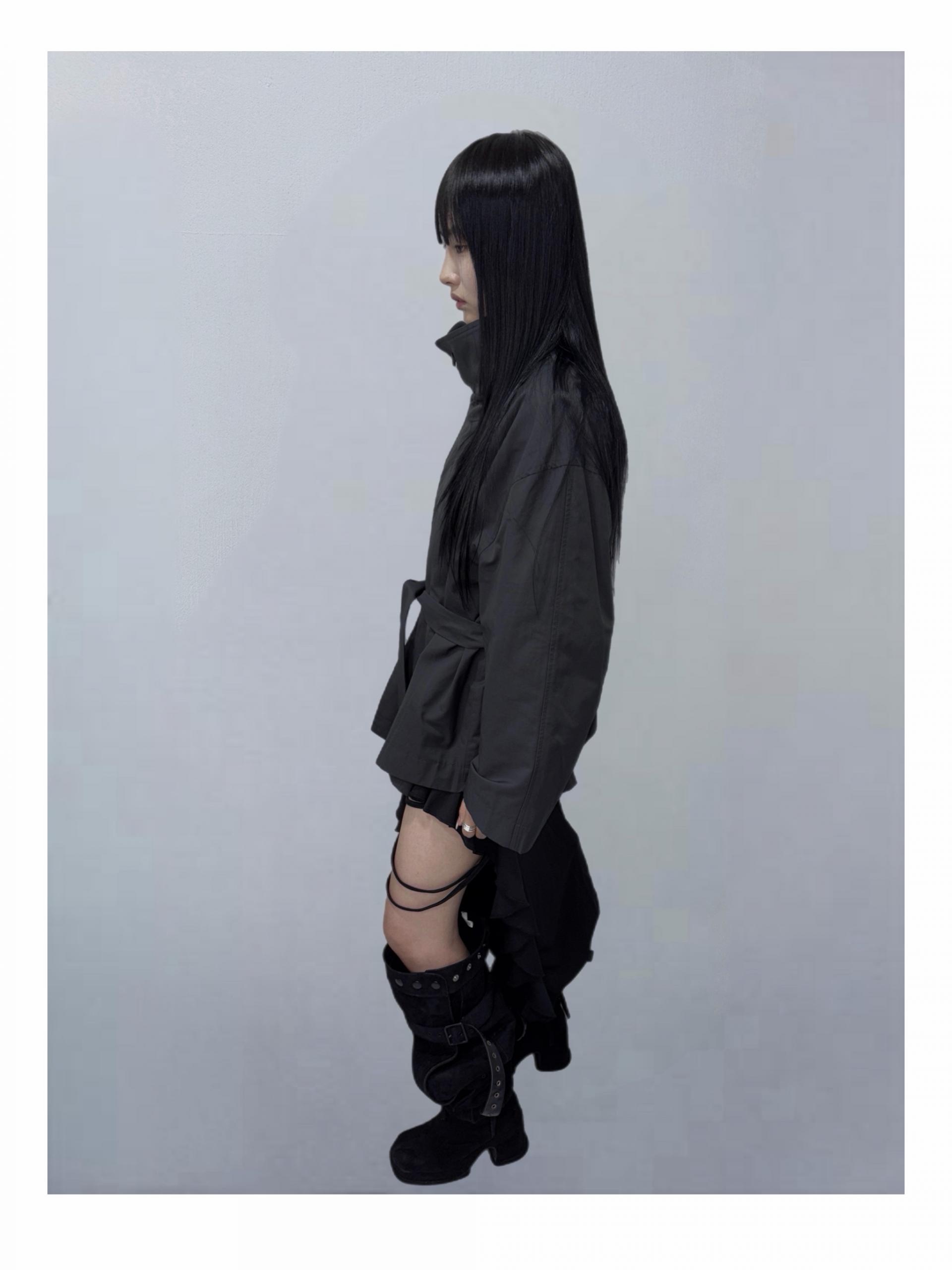 High-Neck Belted Short Trench